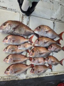堺市の岡本さん!真鯛!49㌢頭に11枚